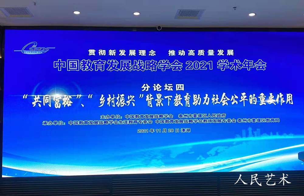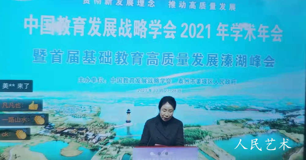 人民艺术网本网讯:11月27日,中国教育发展战略学会2021年学术年会暨首届基础教育高质量发展溱湖峰会以线上模式召开,与会领导、嘉宾借助数字平台以“云端会议”赋能高质量基础教育。会议以党的十九届六中全会的胜利召开为契机,结合六中全会通过的党的百年奋斗重大成就和历史经验决议的学习要求,坚持以习近平新时代中国特色社会主义思想为指引,以“贯彻新发展理念,推动高质量发展”为主题,紧扣当前我国教育改革发展的重大战略问题设置专题论坛。