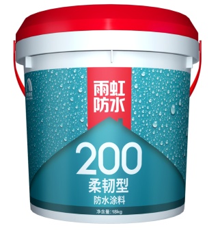雨虹200柔韧型防水涂料抗渗性能强,相当于处于100米深度的水压不渗水。它也具有一定柔韧性,适应多种基层,可以用于卫生间、厨房、阳台等不同部位的防水、防潮。