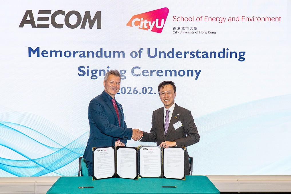 香港城市大学(港城大)能源及环境学院与全球基础设施领先企业AECOM于近日正式签署合作备忘录,建立战略合作伙伴关系。双方致力结合顶尖学术研究与行业实战经验,共同加快推动香港在可持续发展及气候韧性建设领域的高质量发展。