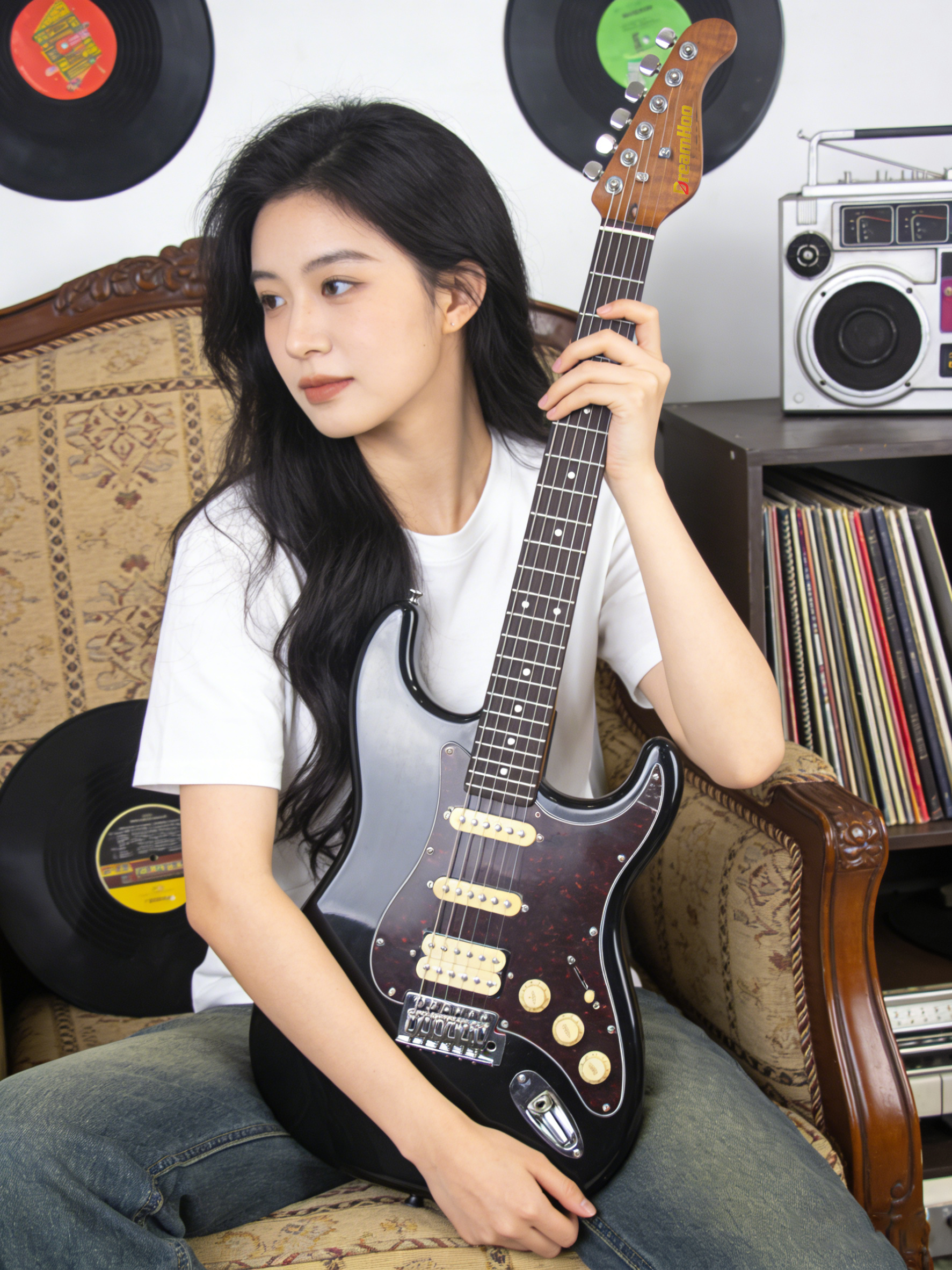 ·拾音器配置:单线圈 + 双线圈拾音器组合,可切换清澈民谣分解与饱满摇滚失真,适配流行、摇滚、民谣等多种风格。