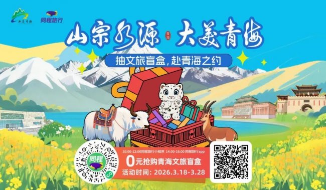 为扩大活动影响力,创新文旅消费体验,同程旅行特别推出了“0元抽文旅盲盒,赴青海之约”线上联动活动。在3月18日至28日期间,用户每日可在同程旅行微信小程序或APP的指定时段参与,盲盒内包含前往青海的机票、酒店、门票等各类满减优惠券及特色文创礼品,以年轻化的玩法激发实地探访的兴趣。