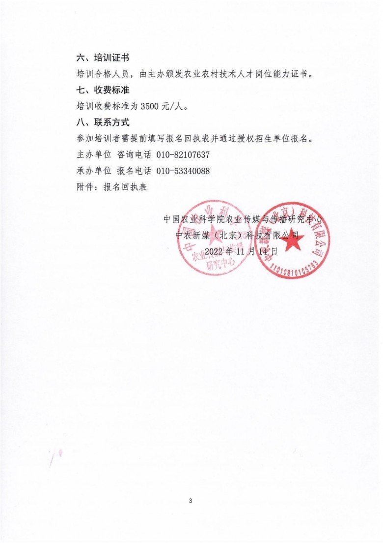 为紧扣新时代实施乡村建设行动,推进乡村全面振兴人才需求,通过密集政策解读和实战培训,深度理解国家乡村振兴战略部署,深度认识乡村规划理念框架、技术要求和操作规范,拓宽视野、提高素养,提升乡村规划实际操作能力。“乡村规划师岗位能力培训班”将由中国农业科学院农业传媒与传播研究中心、中农新媒(北京)科技有限公司主办,北京卓然超群科技有限公司承办授权招生。培训合格人员,由主办颁发农业农村技术人才岗位能力证书。