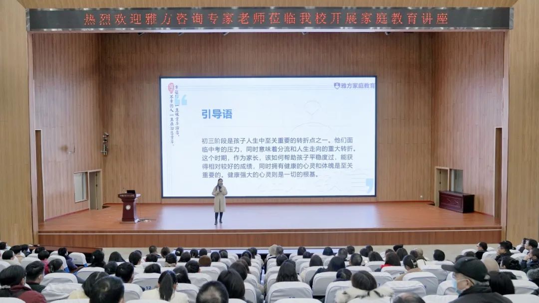 2023年11月24日,作为家庭教育行业标杆的雅方咨询,受邀前往郑州市第五十八中学,为初三学生家长们开展了一场精彩的家庭教育公益讲座。