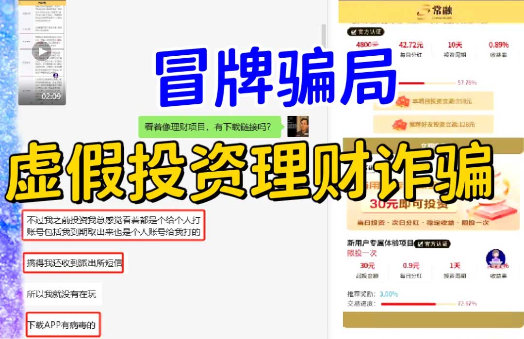 1、假冒的“常融”APP:冒牌骗局,虚假投资理财类诈骗