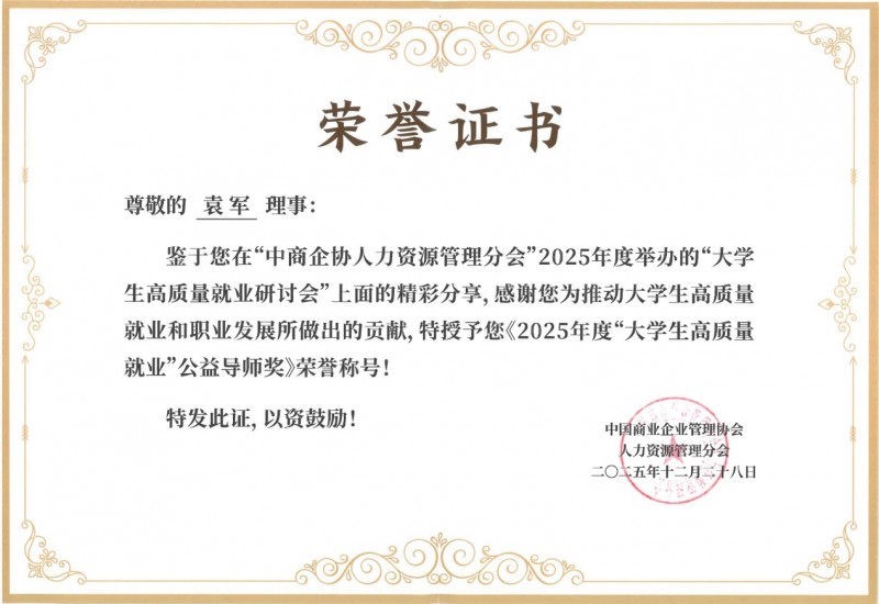 作为全国性非营利社会团体,中国商业企业管理协会自1987年成立以来,始终聚焦企业发展与人才培养,其颁发的奖项兼具行业公信力与社会影响力。此次“大学生高质量就业”公益导师奖的评选,重点考量候选人在就业公益服务、青年职业指导、行业生态建设等方面的实际成果,袁军老师的上榜,正是其多年践行公益使命的有力见证。深耕就业服务领域多年,袁军老师凭借毕业于中国人民大学劳动人事学院的专业积累及曾就职于国家电网人力资源部、面试过上千名应聘者的丰富实战经验,带领菜鸟无忧构建起覆盖职业规划、技能提升、岗位匹配的全链条服务体系。他牵头发起“大学生高质量充分就业职场公益导师招募计划”,汇聚行业精英为学子赋能;推动公司与全国2000余所高校建立就业指导合作,将千万级实战经验转化为公益课程与指导方案,切实打破就业信息壁垒。在他的引领下,菜鸟无忧的AI人岗匹配系统将求职效率提升10倍以上,全年累计帮助学员斩获超9608张录用通知,更通过每日公益直播、一对一结对辅导等形式,为无数就业困难学子点亮职业明灯。