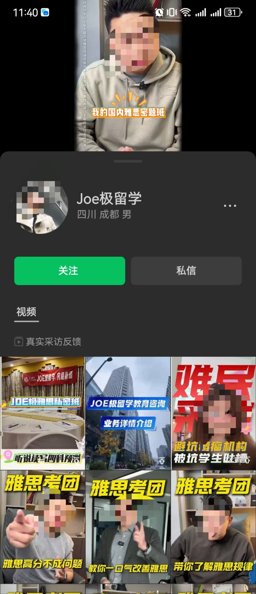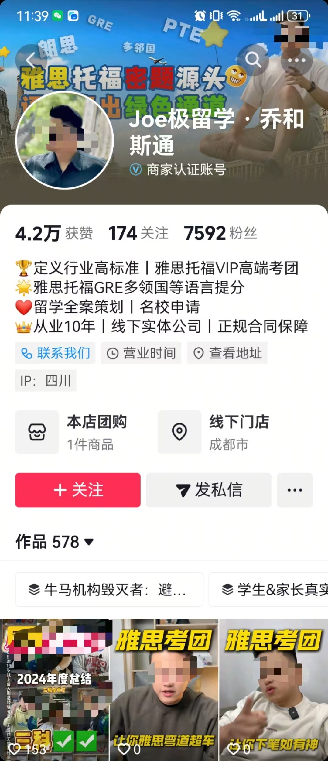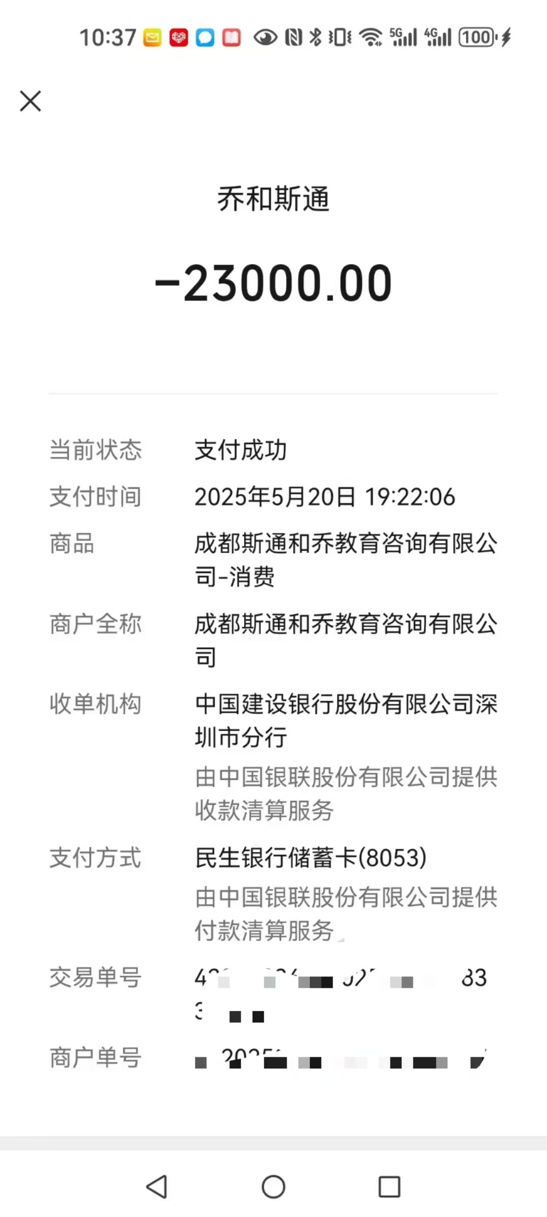 本人李娜2025年4月我花费24000报名了成都乔与斯通教育咨询有限公司的辅导班,公司保证考试范围预测60%以上,实际辅导内容和考试内容不一致,且该公司教学人员无任何雅思教学资质。收取高额课程费用,提供的课程数量和质量远远低于课程介绍和课程计划,收费16000的课程,说好的集训前听力阅读直播课改成了录播课,且课程质量很低。集训人数说好的不超20人,现场人数超过20,告知的三次一对一外教课,改成了一对三外教,集训绝大部分时间被阅读课和听力课占用,但听力和阅读全程没有任何讲解,没有任何给听音频,只是让学生在平台板上自己看,另外收取了3000元的资料费,只让看电子版资料,不给纸质版。只有写作课程相对属实,安排了5次1对1,其他均实际与事先告知的相差甚远。 这家教育机构,今年已经更换4家公司持续性诈*,分别是上海雅托乐优学教育科技有限公司、成都乔和斯通教育咨询有限公司、成都斯通和乔教育咨询有限公司、成都乔与斯通教育咨询有限公司 在上海和成都2地作案。哄*学生可以拿到雅思考试原题,欺诈消费、虚假宣传。事后为了躲避相关机构调查,更换地址,拒接电话。 教育机构无相应培训资质,无证办学。加上偷税漏税,利用互联网诱*学生,公司地址虚构,对社会造成了非常大的负面影响希望能够得到处理。