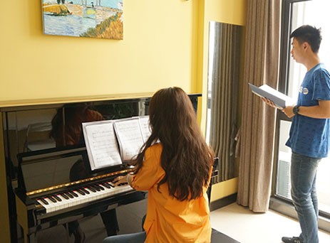 对于有基础的学生主要是在原有基础上提升专业水平,使演奏更具表现力和感染力。对于偏科严重的学生,在课程安排和练琴时间上也会合理安排,帮助他们补齐短板。很多学生在练琴上投入很多时间,但对视唱练耳乐理的重视不够。而在艺考中,这三门可以刷掉不少学生。所以悦点紧抓小三门的学习,要求学生视唱注重旋律线条, 练耳注重音阶和音程,乐理反复刷题,掌握题感。