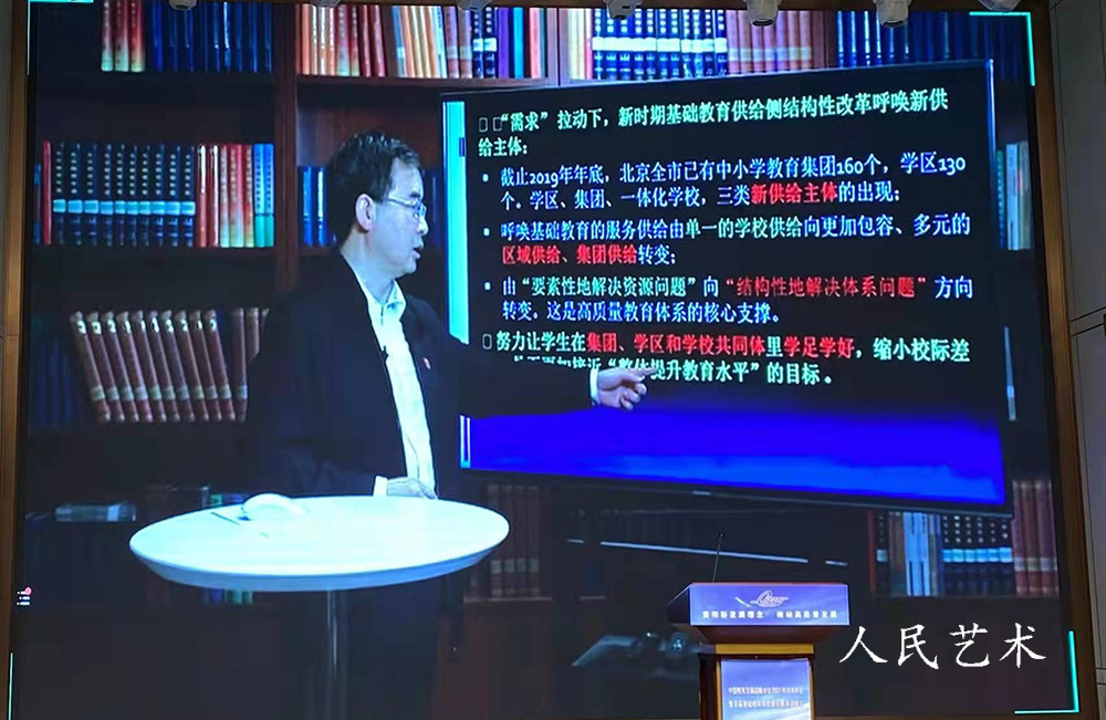 构建基础教育发展新格局,要建设促进基础教育更加公平、更高质量的优质均衡的基本公共服务体系和富有活力的高质量协同育人体系。与会领导和专家均表示,党和政府坚持优先发展教育,要下好发展基础教育的先手棋。教育部基础教育教学指导委员会主任委员王湛认为,要在巩固现有“普惠,基本、兜底”的教育民生基本服务基础上,扩面提标,从基本均衡向优质均衡提升,提升推进区域义务教育均衡发展的层级。要把顶层设计和基层创造结合起来,贯彻新发展理念,提升基层学校的实践力,激发基层学校的创造力,努力培养担当实现第二个百年奋斗目标重任的一代新人。他认为,要提升五育并举的实践能力和融合培育的水平,深化课程改革,推动育人方式发生深刻变革,加强因材施教,提升满足多样化的发展需求的水平,特别要落实“双减”措施,实现减负、提质相得益彰,要推进评价体制改革,建设高水平的教育信息化体系,促进基础教育优质均衡发展。国家教育咨询委员会秘书长张力阐述分析了“十四五”时期到2035年教育现代化宏观形势与政策导向,回顾了新中国成立以来教育事业取得举世瞩目的巨大成就,认为广大教育工作者要从党和国家事业发展全局的高度,全面贯彻党的教育方针,坚持优先发展教育事业,坚守为党育人、为国育才,努力办好人民满意的教育,在加快推进教育现代化的新征程中培养担当民族复兴大任的时代新人。