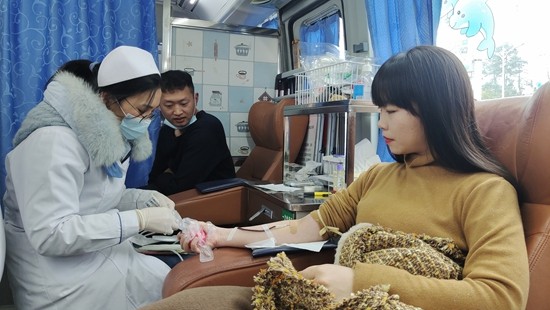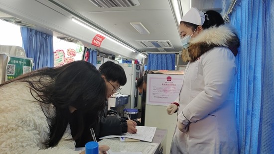 只见献血现场,老师们依次走上献血车,扫描健康码、行程码,认真填写《无偿献血者登记表》、测量血压、采血化验……所有流程都在市血站医护工作人员的指导要求下井然有序地进行。虽然窗外的积雪已经褪去,但此时寒意却正浓,老师们纷纷脱下厚重的棉衣,挽起袖子,露出胳膊,用热血传递着浓浓暖意。在此次无偿献血的15名教师当中,有从教多年的老教师,也有刚刚入职的新老师,有多次献血的“老熟人”,也有首次参加献血的“新同志”。随着鲜红的血液缓缓流入血袋,每一位教师的脸上都露出了欣慰的笑容,因为他们又一次为社会献出了爱心。特别令人动容的是,不少教师在献血结束后,顾不上短暂的停留,就匆匆赶回教室走上了讲台。