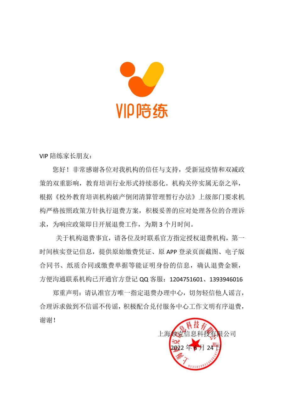 VIP陪练最新消息:2022双减政策下的退费方案