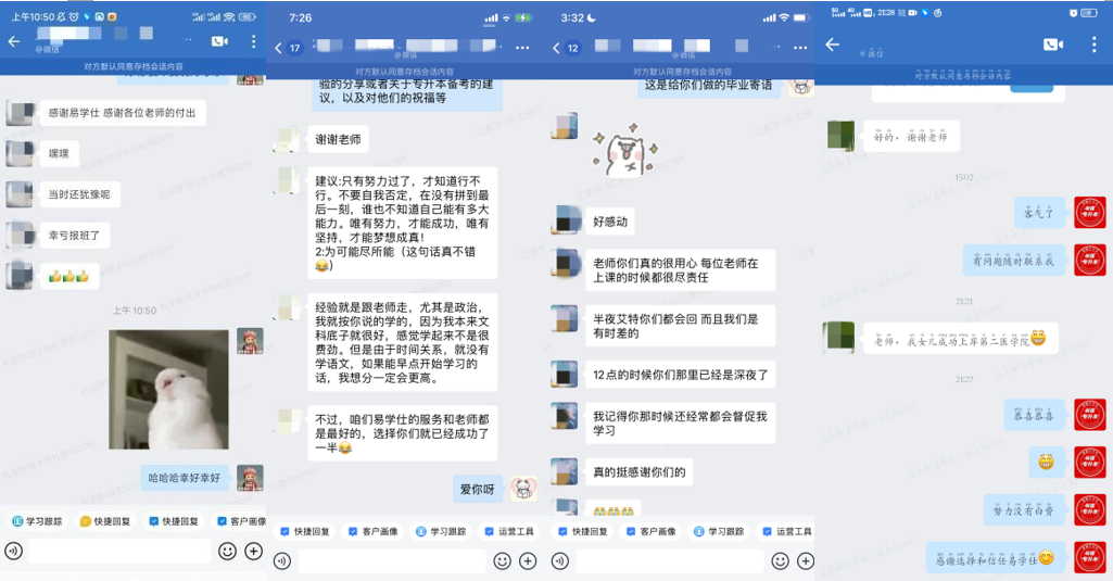 “群里捷报频传,喜讯连连,老师们也收到了很多同学的感谢信和有感而发的学习心得。”易学仕专升本总经理吴争峥欣慰地告诉记者。