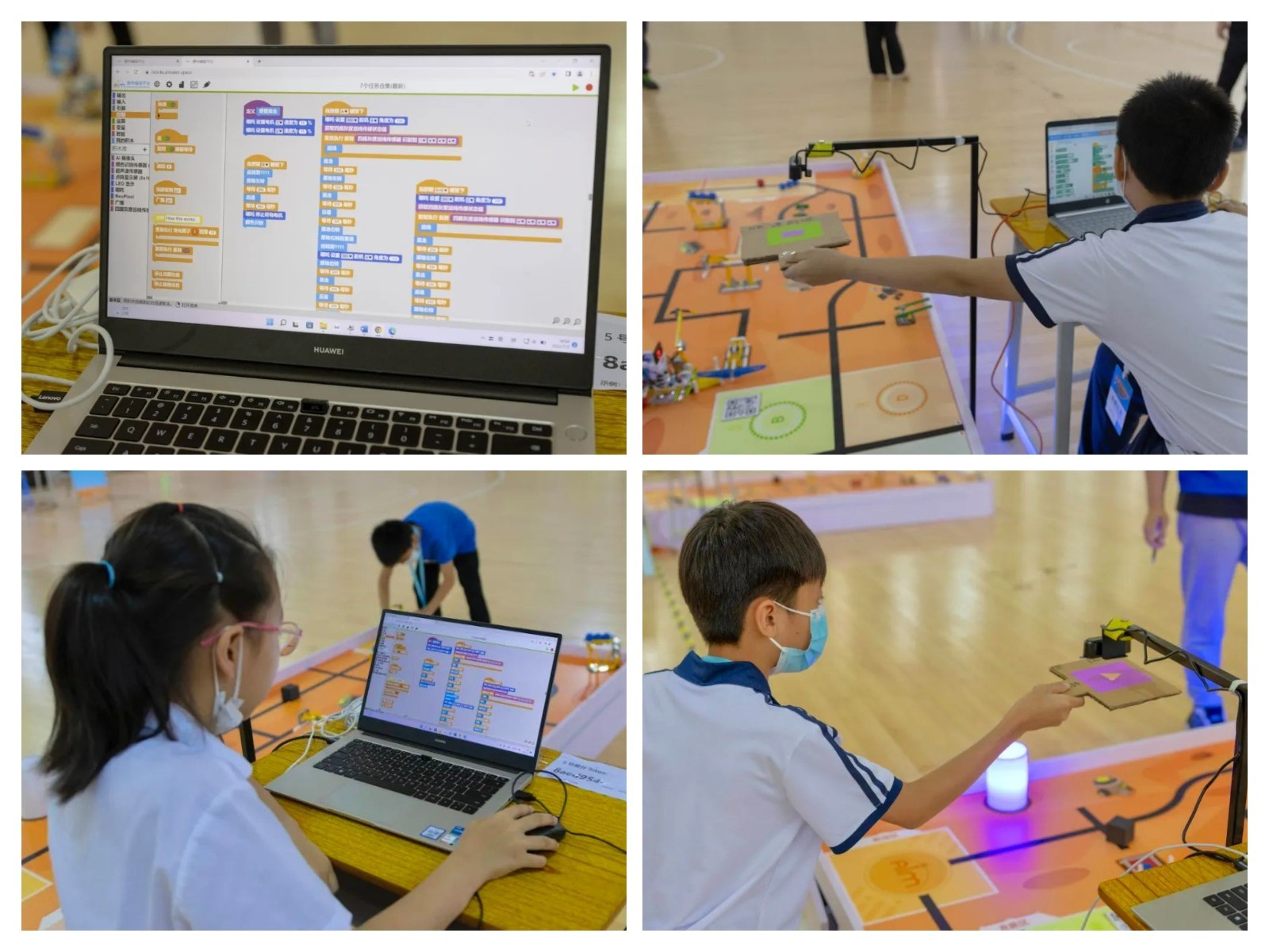 小选手们个个摩拳擦掌,全神贯注于每一环节。面对有一定难度的挑战,这群热爱 AI 的孩子不露惧色,与队友同舟共济,积极发挥自己的优势和潜力,确保机器人能以最快的速度、最高的精确率完成任务,到达终点。
