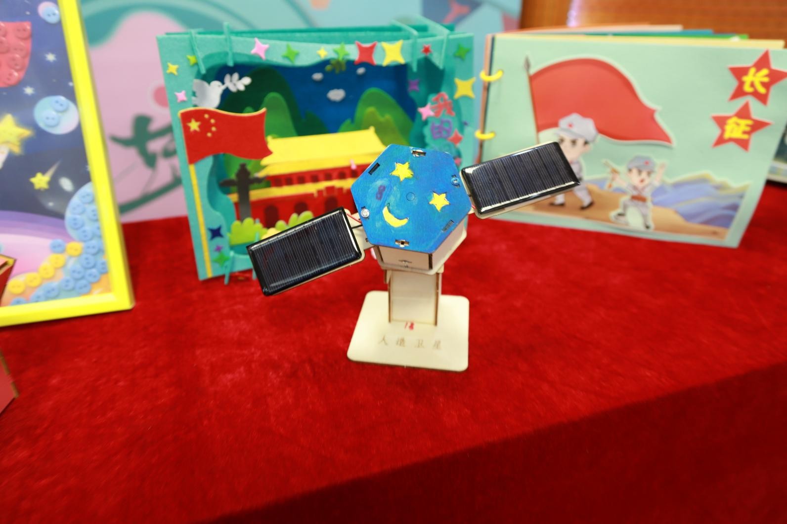 随后的班级活动中,一年级学生以最朴实的劳动元素——纽扣,绘制宇航员成功进入太空的辉煌画面。二年级学生动手制作书籍,学习革命先辈的英雄事迹、传承红色精神。三年级学生用盛世中华摆件抒发对祖国盛世的自豪之情,对祖国的热爱之情。四年级学生制作的“星星向党”摆件展现了中国共产党的丰功伟绩和伟大贡献。五、六年级制作的航天模型,致敬中国航天业的砥砺奋进,弘扬航天精神。