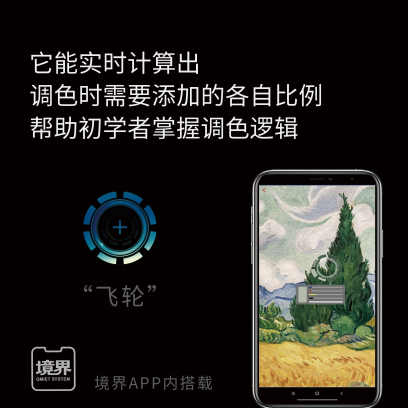 甚至,你还可以躺着进行学习。学习油画重要的一个部分是学习如何调准每一个色彩。这是一个学问:色彩学。色彩与色彩之间细微的变化,决定着冷暖关系、明暗关系。这可不是外面有些所谓的“就要靠天赋去调色”,然后夸赞每一个学习者都“天赋异禀”,个个拥有神力。这种以续费为目的的夸赞只是一种挣钱的理由。境界APP为美术生搭载了人工智能辅助调色管理系统“飞轮”,它能实时计算出不同颜色的调色配比,你可以站着、睡着、趴着......用“飞轮”AI来帮助自己建立专业调色逻辑。油画调色软件。
