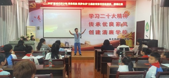 据悉:这个学期以来,围绕读书活动主题,组织了征文、绘画比赛等活动。在2022年娄底市“新时代好少年,强国有我”主题教育读书活动暨演讲、朗诵比赛中,该校选送的作品夺得一等奖。