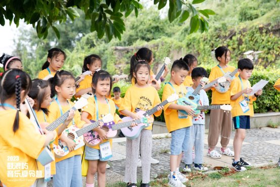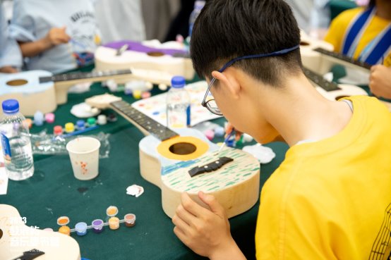 此外,为了更加丰富营员们的音乐体验,营造多种探索方式,课程中还专门开设了尤克里里的制作与弹唱,鼓励营员积极动手创作专属于自己的尤克里里,引导营员在趣味互动中主动探究和学习。