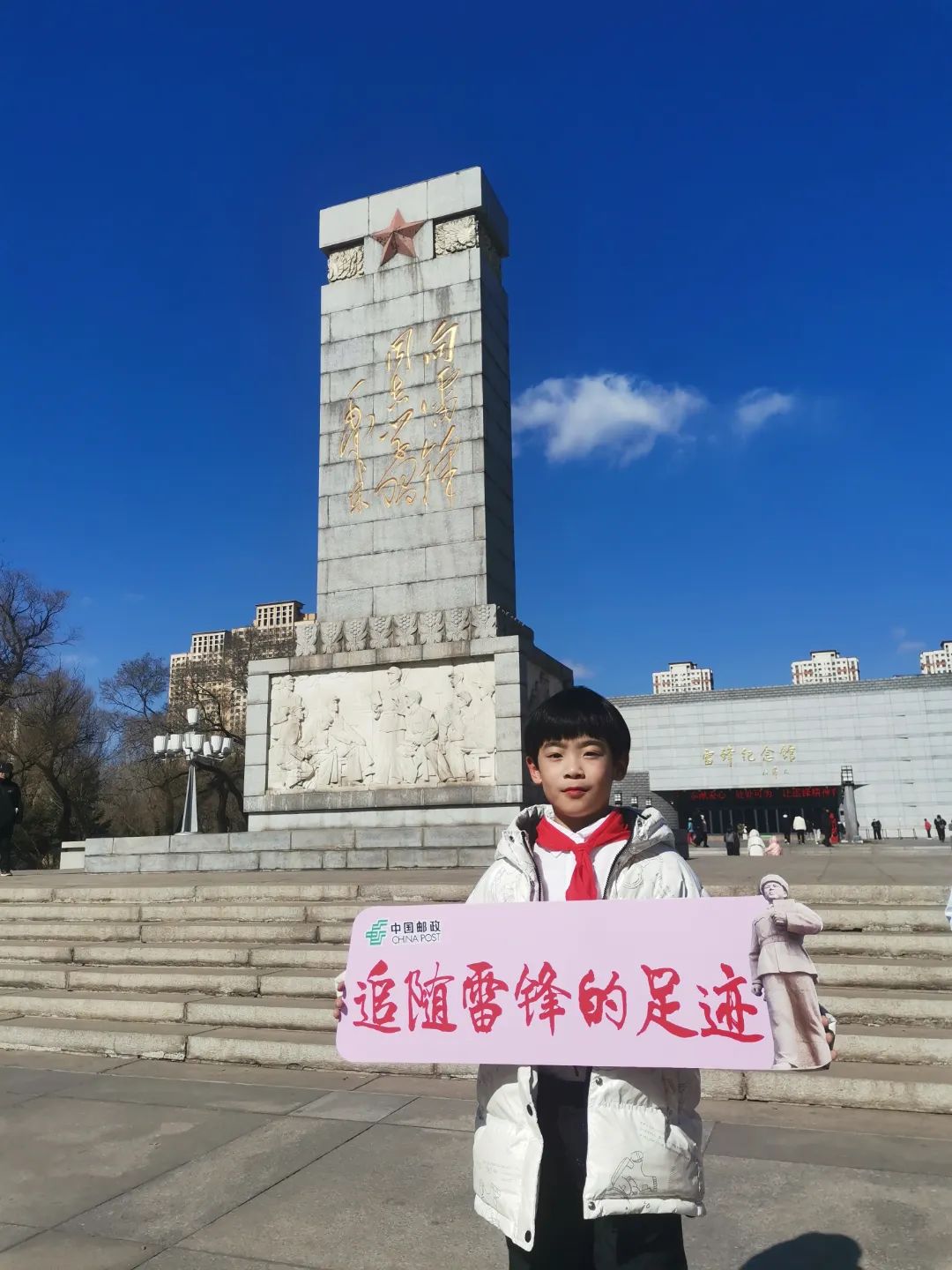 3月5日天山一校郝翌帆和“追锋少年志愿服务团”的小伙伴们,参加了抚顺雷锋纪念馆“学习雷锋”主题活动,在大型音诗画舞台剧《做雷锋式的好少年》中,演唱了歌曲《雷锋日记》。