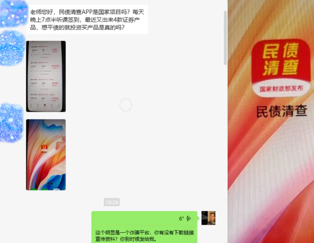 8、伪造的“民债清查”APP:民族资产解冻诈骗,虚假投资理财类诈骗