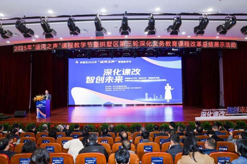 2025年12月10日,由杭州市拱墅区教育局主办,杭州市拱墅区教育研究院、杭州市慧澜中学承办的拱墅区2025年“运河之声”课程教学节开幕式暨第三轮深化义务教育课程改革总结展示研讨活动顺利召开。本次活动以“深化课改 智创未来”为主题,全面展现拱墅区中小学在课程改革与智慧教育融合方面的探索与实践。