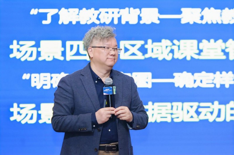 国家教材建设重点研究基地执行主任、华东师范大学课程与教学研究所所长、博士生导师崔允漷教授以《单元时代的AI+循证教研》为题作主旨报告。崔教授指出,新课标已进入“单元时代”,教学、教研须以单元为基本单位。当前课改要从“改公开课”转向“改进家常课”,让每位学生受益。他提出,可借助AI课堂智能分析平台(AIC),生成“数课报告”,实现对学生学习、教师教学的循证分析。通过教师自我反思、同伴研讨、专家引领等多场景教研,针对不同类型课程(如导入课、新授课、复习课)建立分类模型,打开家常课“黑箱”,推动基于实证的教研专业化转型,真正赋能日常教学改进。