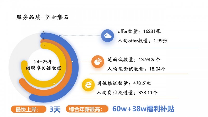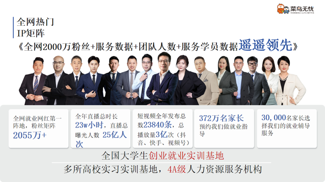行业深耕,菜鸟无忧交出了一份亮眼的就业服务答卷。截至目前,企业累计服务超千万大学生,2024年-2025年招聘季便助力学员斩获16231张offer,人均offer获得率达1.99张,累计为学子争取13.98万个笔面试机会,更有学员3天最快成功上岸,甚至拿下综合税前年薪60万+38万福利补贴的优质岗位,用实打实的成果诠释“高质量就业”的内涵。为了让就业服务更普惠,菜鸟无忧搭建起全网2055万+粉丝的传播矩阵,全年开展超23万小时,平均每天630小时求职干货直播,短视频发布总量23840条,直播间年曝光量超25亿人次,让就业干货触达更广人群;更精心编撰《央国企招聘考试一本通》等系列求职图书,成为多所高校的推荐用书,其中《央国企招聘考试一本通》更是跻身京东就业指导类图书销量TOP1,成为学子手中的“求职工具书”。